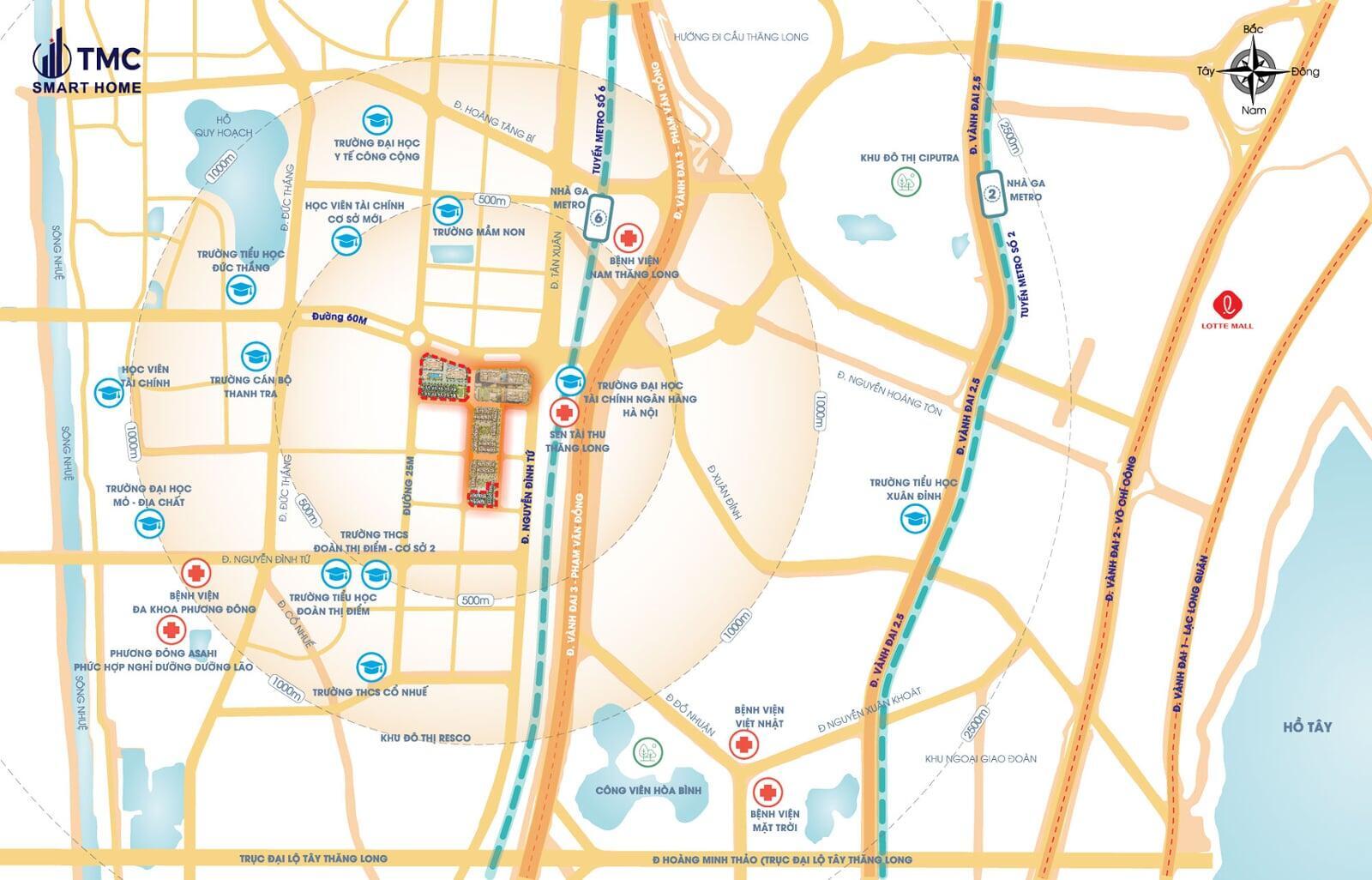 Với vị trí thuận tiện, cư dân chỉ mất vài phút để đến Phạm Văn Đồng, Vành đai 3, Võ Chí Công, Lotte Mall, Bệnh viện E hay Học viện Tài Chính.